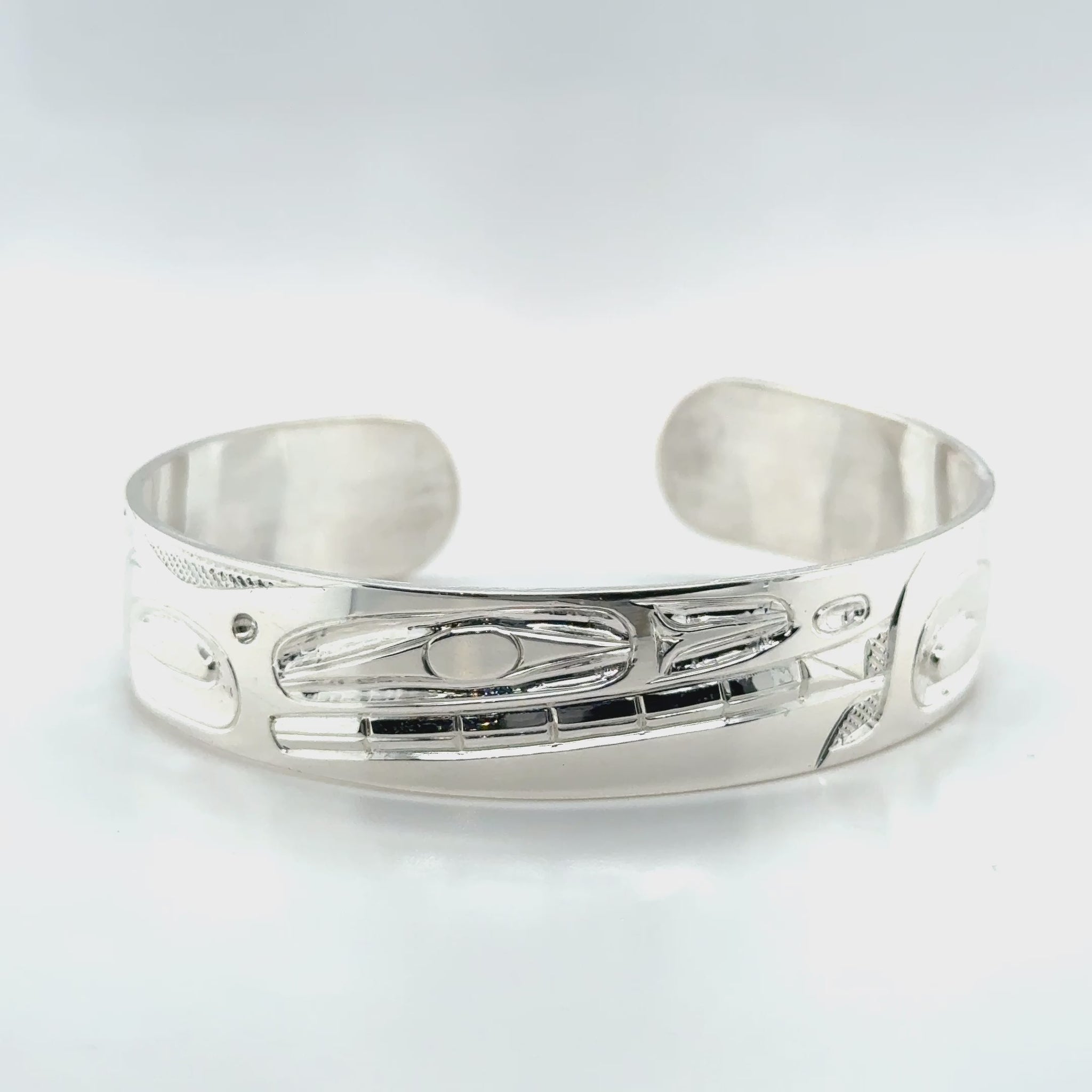 Sterling silver 1/2" width orca bracelet.